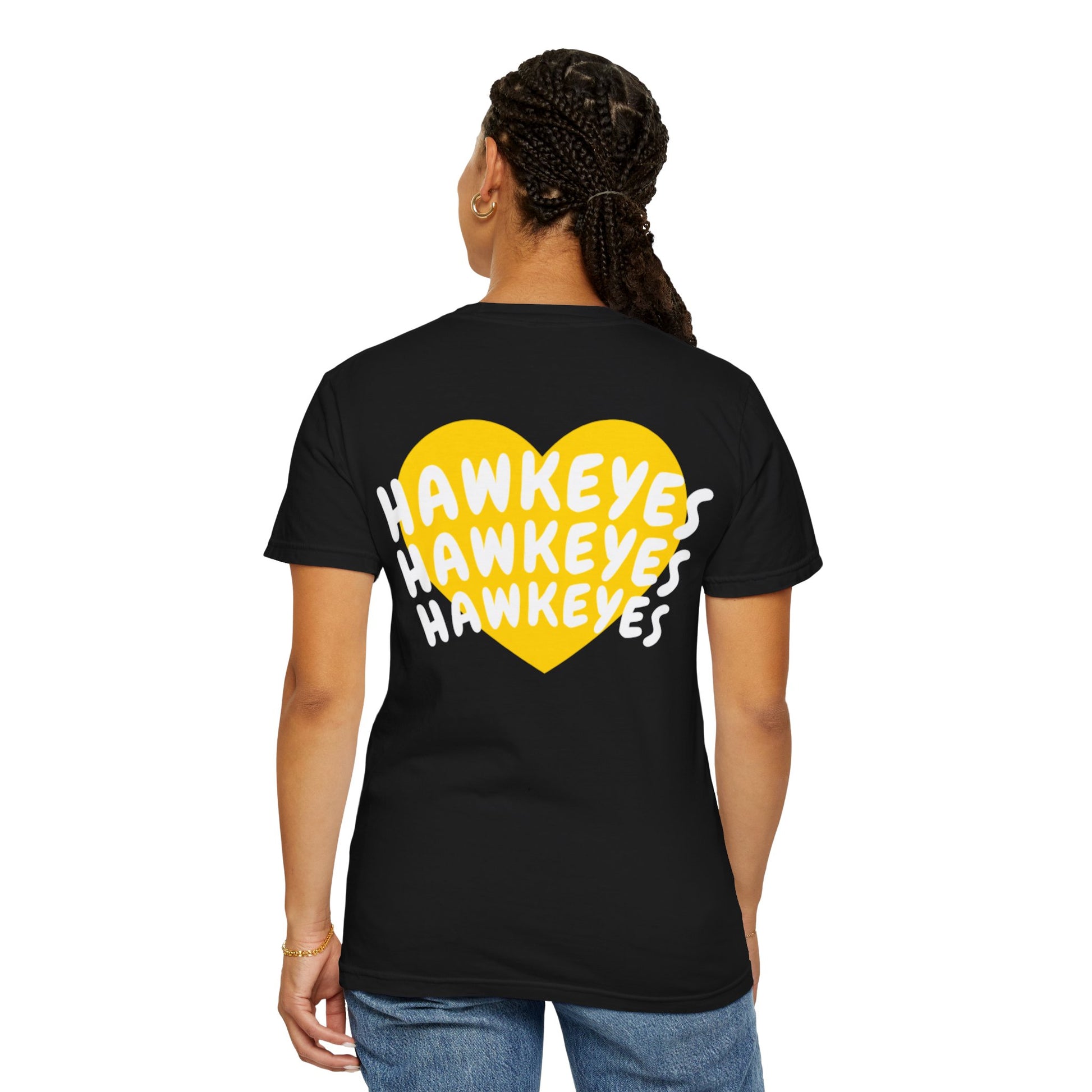 Show your love for the Hawkeyes in this sweet and simple tee. The Iowa Hawkeyes Hearts Tee features a clean white “IOWA” design accented with gold hearts — a subtle nod to Hawkeye pride. Made from soft, breathable cotton with a relaxed unisex fit, it’s perfect for everyday wear, game days, or pairing with your favorite jeans.
