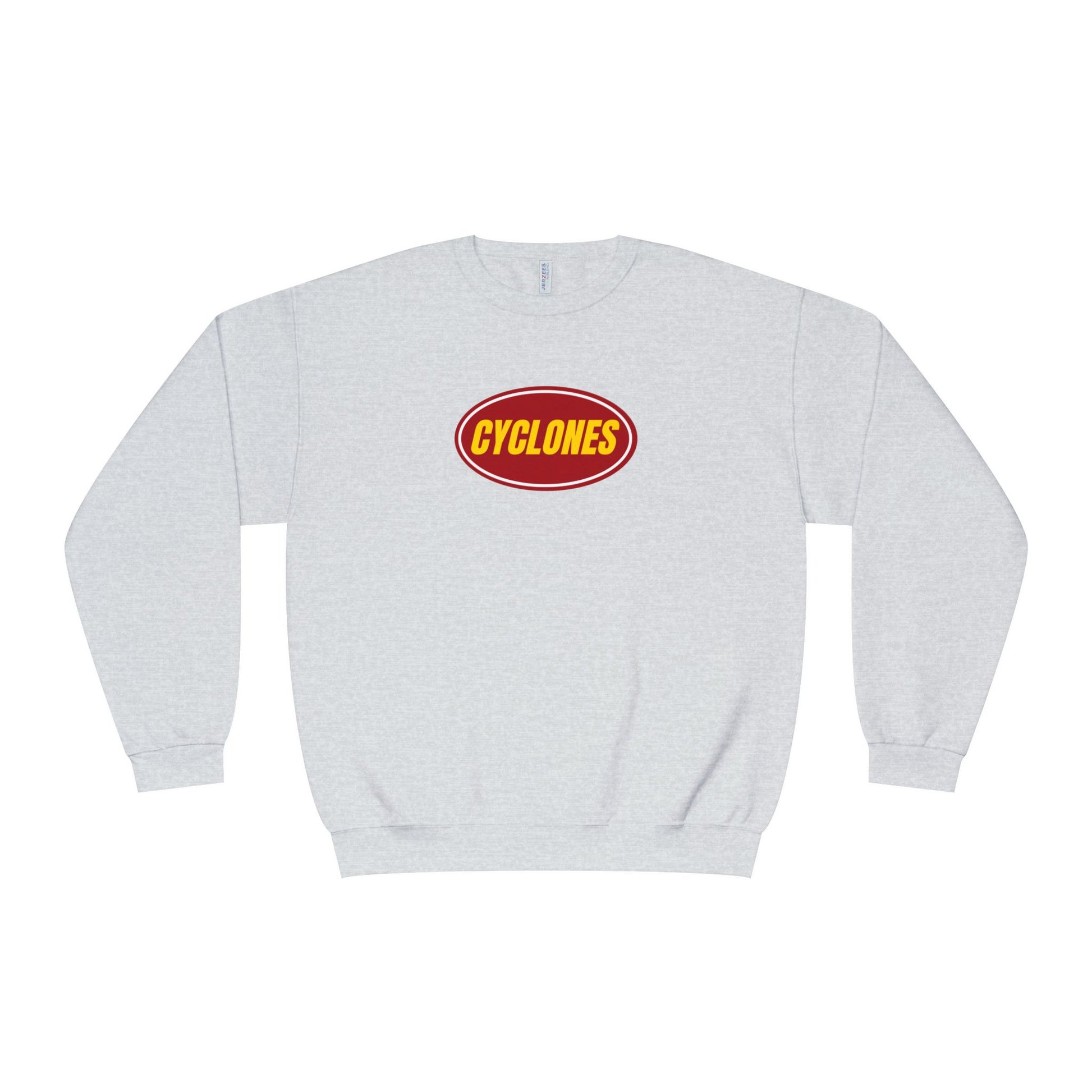 This mid-weight crewneck brings casual comfort and collegiate spirit together. Soft NuBlend® fleece feels warm against the skin while holding its shape through washes. The bold maroon-and-gold “CYCLONES” emblem sits centered on a clean white field — subtle from afar, confident up close. Wear it to chilly practices, long drives, or relaxed weekends when you want something familiar, comfortable, and quietly spirited. The regular fit layers easily over shirts and under jackets, and the tear-away label keeps the neck itch-free during all-day wear.